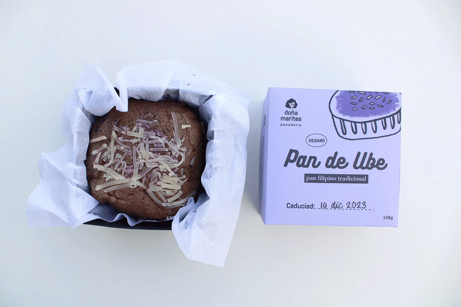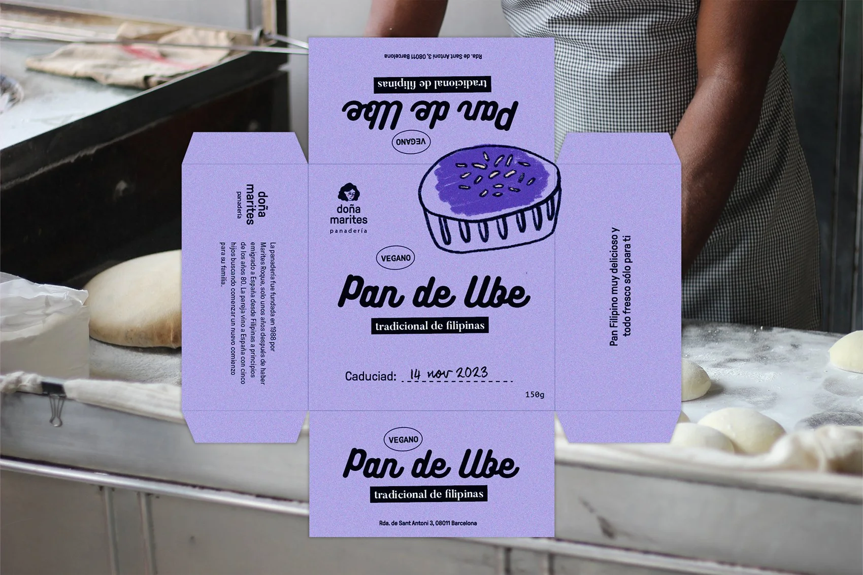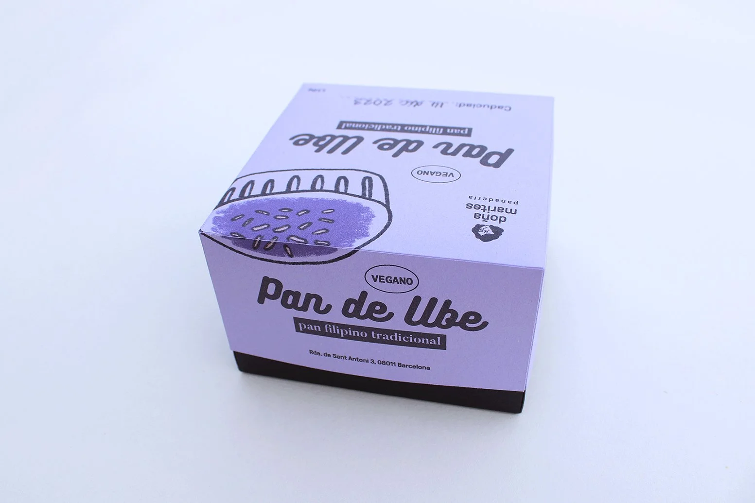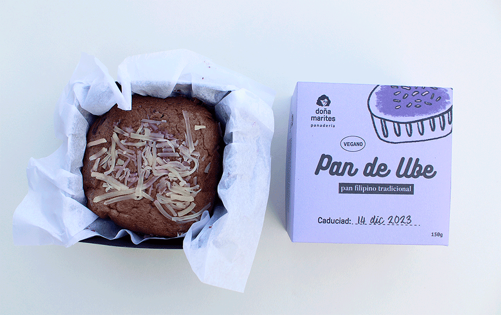 This is a redesign of the packaging for a popular Filipino bread called Pan de Ube. The design uses simple illustrations and bold typography to keep it playful but easy to understand. The packaging is printed on purple paper to reflect the colour of the ube inside and create a clear visual connection with the flavour.